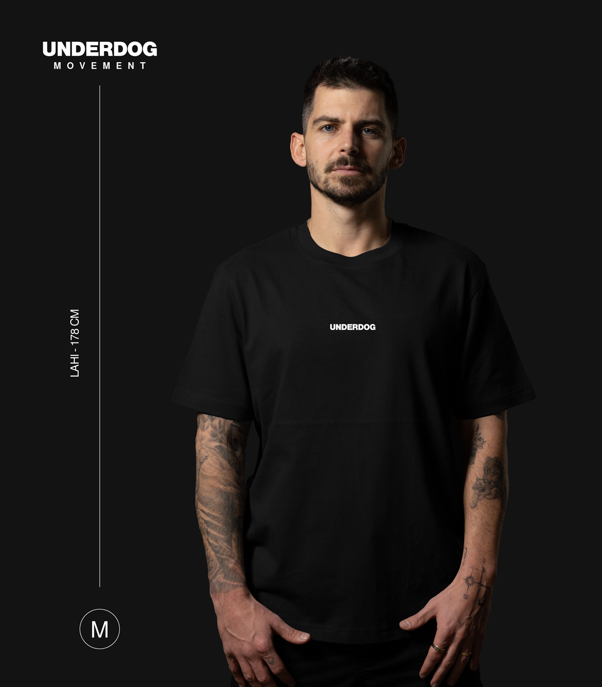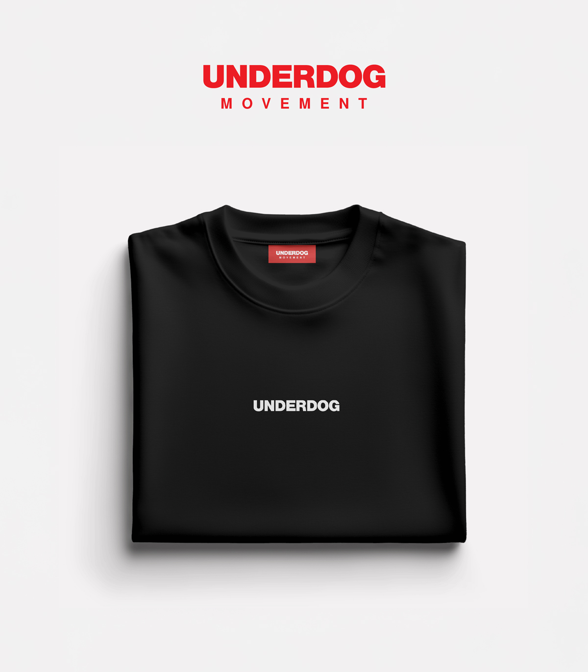 UNDERDOG majica z vezenim napisom na sprednji strani in prišito Underdog Movement etiketo na notranji strani ovratnika.